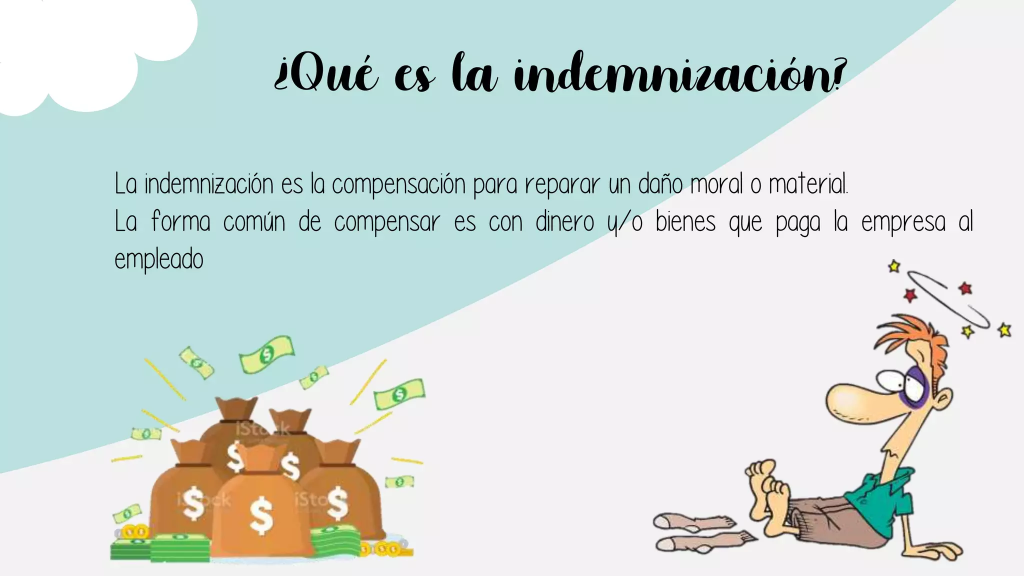 Una indemnización es una suma de dinero destinada a reparar un daño causado a otra persona. Puede surgir por: